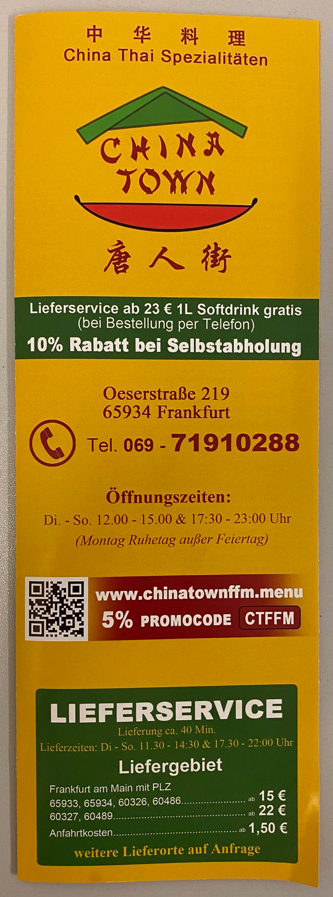 China Town Frankfurt I Speisekarte I Stand 06.2025 I Änderungen jederzeit möglich!