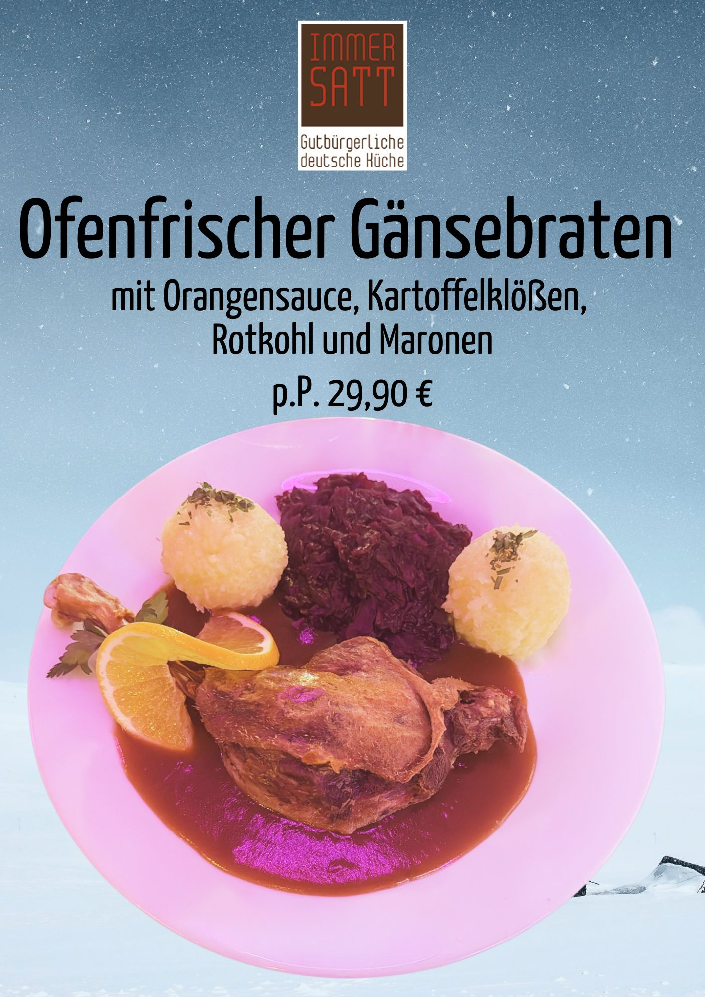 Über das Jahr hinweg erwarten die Gäste immer wieder kulinarische Highlights: vom privaten BBQ-Event im Sommer über Weihnachtsfeiern bis hin zum beliebten Candle-Light-Dinner an Silvester. Das „Immer Satt“ macht jeden Anlass zu etwas Besonderem. An Sonntagen bleibt das Restaurant regulär geschlossen – öffnet jedoch auf Anfrage für Gruppen ab 25 Personen ebenfalls gerne die Türen.