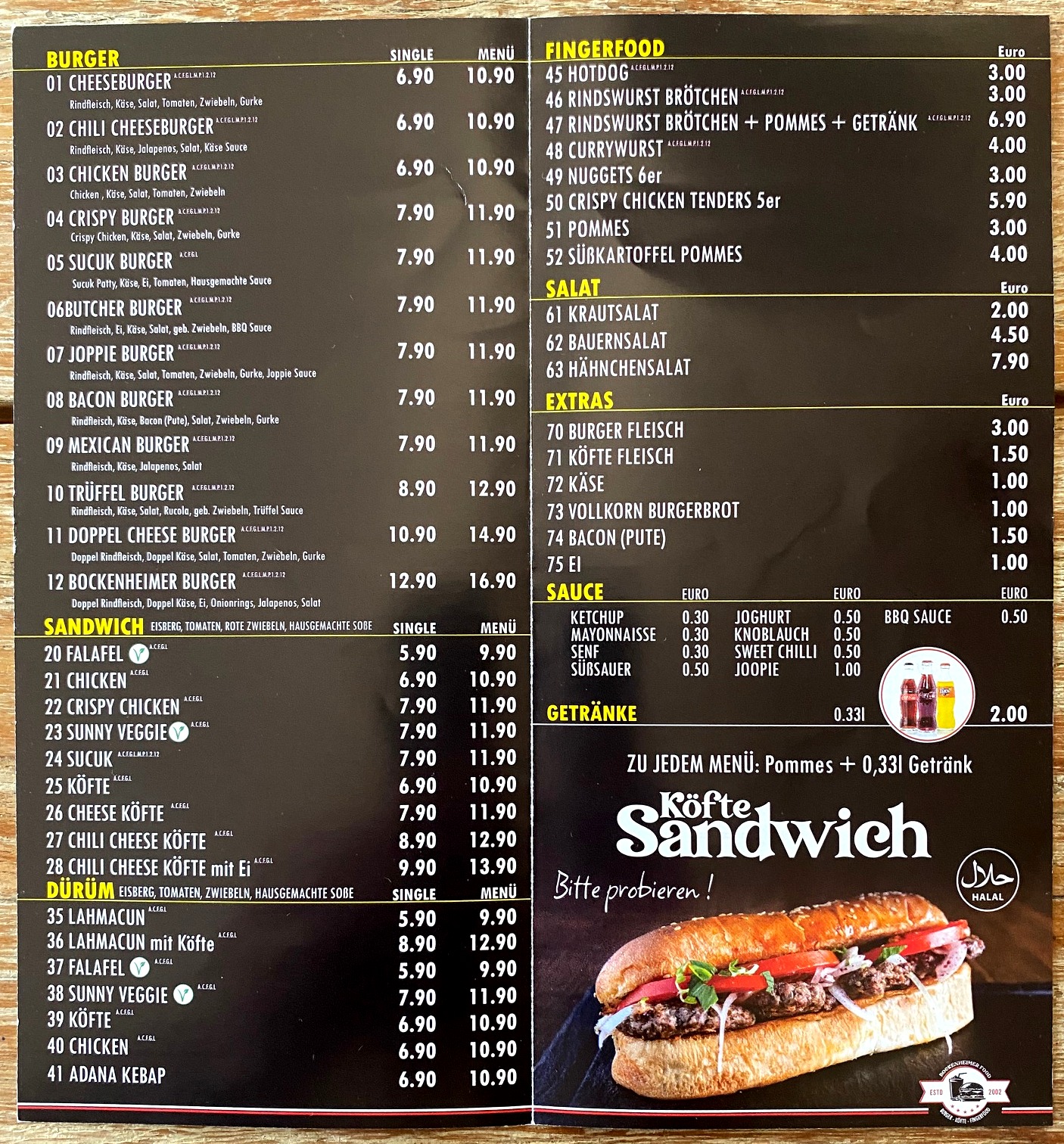 Bockenheimer Food I Burger - Köfte - Fingerfood I Stand: 10.2025